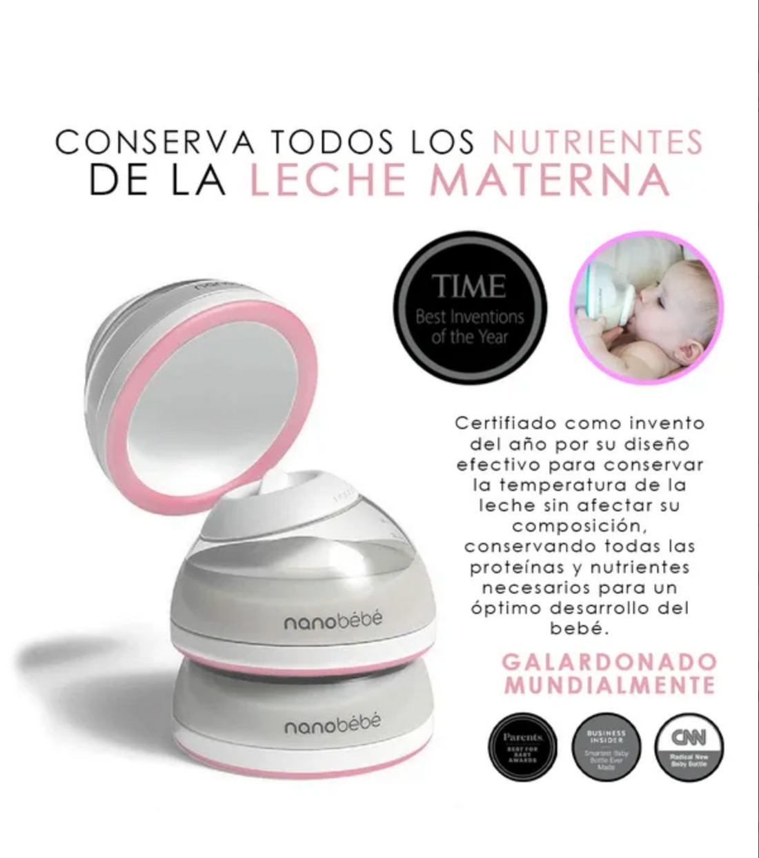 - Protección de nutrientes: un biberón de almacenamiento de leche materna que enfría 2 veces más rápido para reducir el crecimiento bacteriano. Incluso el calentamiento evita puntos calientes y el calentamiento rápido permite utilizar temperaturas seguras.