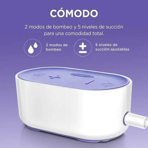 Su tecnología de dos fases imita el patrón natural de alimentación del bebé y sus 5 niveles de succión proporcionan la máxima comodidad para las mamás que se extraen leche.